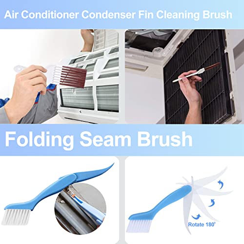 6 in 1 Air Conditioner Cleaning Tools Kit with Condenser Fin Straightener Cleaner, Stainless Steel Air Refrigerator Fin Cleaner, Window Blind Cleaner, and Cleaning Brushes