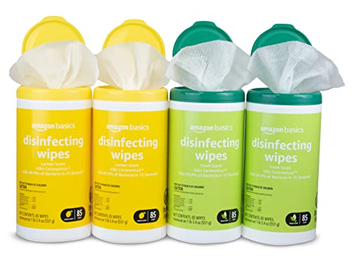 Amazon Basics Disinfecting Wipes, Lemon & Fresh Scent, Sanitizes/Cleans/Disinfects/Deodorizes, 340 Count (4 Packs of 85)