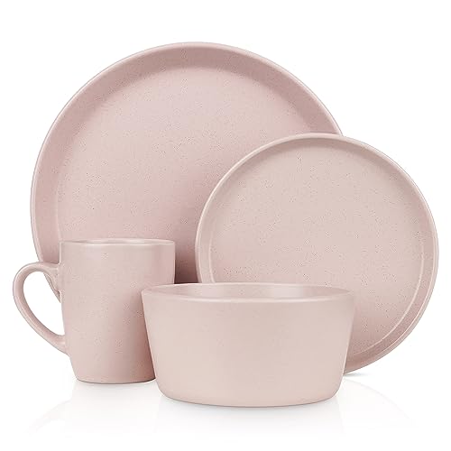 Stone Lain Albie Stoneware 16-Piece Modern Dinnerware Set, Kitchen Plates and Bowls Sets, Dish Set for 4, Pink