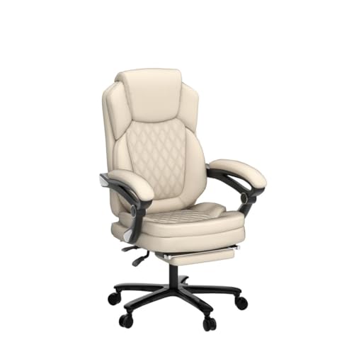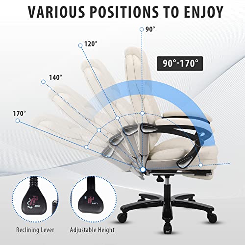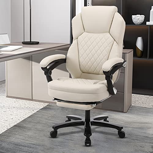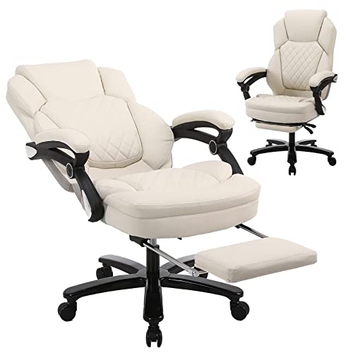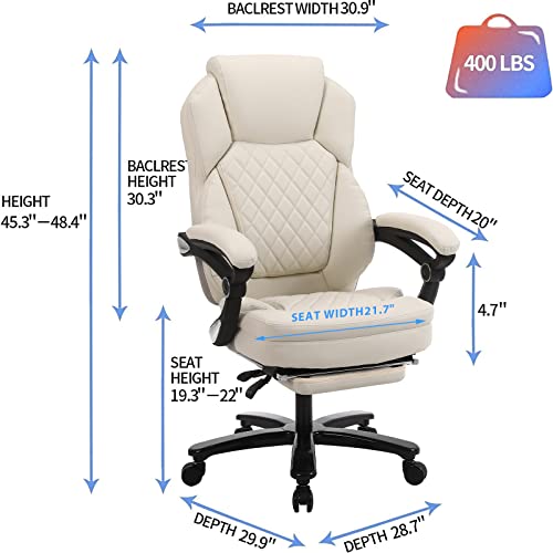 Big and Tall Home Office Desk Chairs for 400lb Heavy People, Ergonomic Reclining Office Chair with Footrest and Wide Seat, Plus Size Managerial Executive Chairs (Cream White) Large(400lbs)
