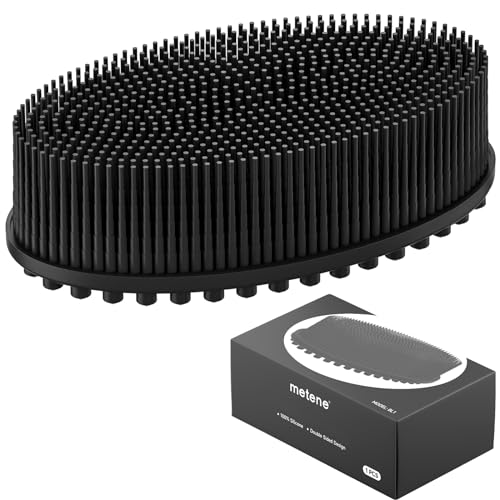 Metene Silicone Body Scrubber, Exfoliating Body Scrubber for Use in Shower,Lathers Well, Long Lasting, Soft Body Scrubber for Shower and Bath Skincare Routine(Black).