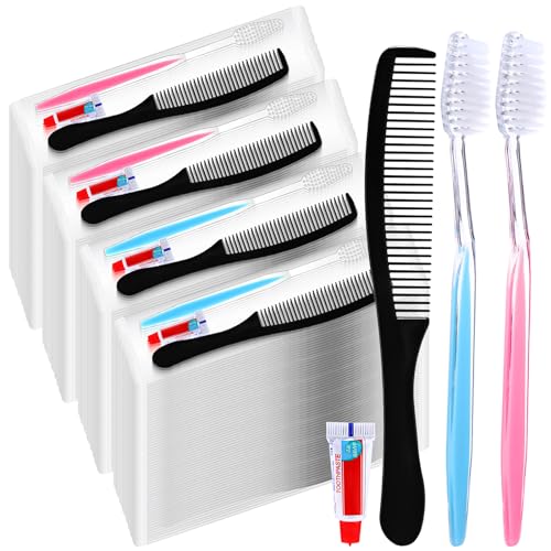 Zhehao 200 Set Disposable Toothbrushes with Toothpaste and Comb Individually Wrapped 200 Travel Toothpaste 200 Black Hair Comb 200 Toothbrush Bulk for Homeless Airbnb Shelter Charity Nursing Home