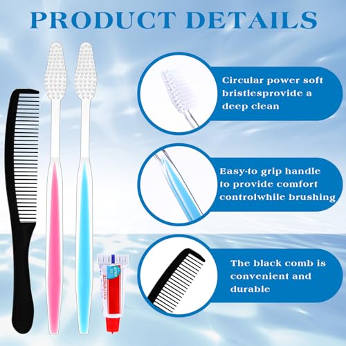 Clean and Hygienic: each toothbrush, toothpaste, and comb set is individually wrapped and sealed to ensure maximum hygiene; Dispose after use and never worry about contamination; Your health and safety is our priority