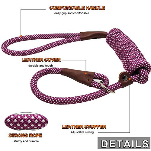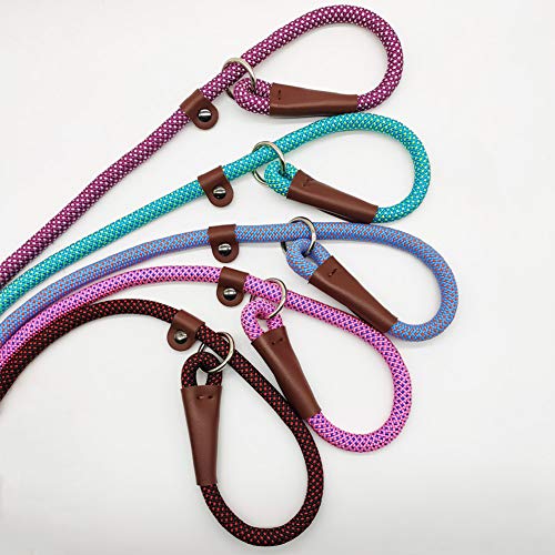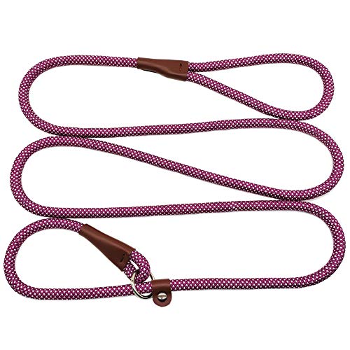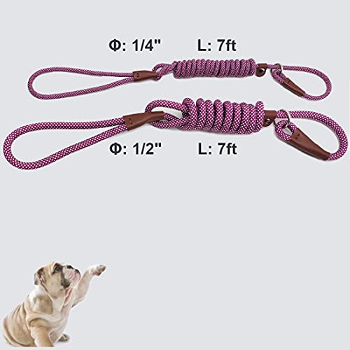 BTINESFUL 7FT Slip Lead Dog Leash, Strong Nylon Rope Leash, 1/4 & 1/2 inch Diam Dog Training Lead for Small Medium Large Dogs (1/4″ * 7 FT, Purple White Dot)
