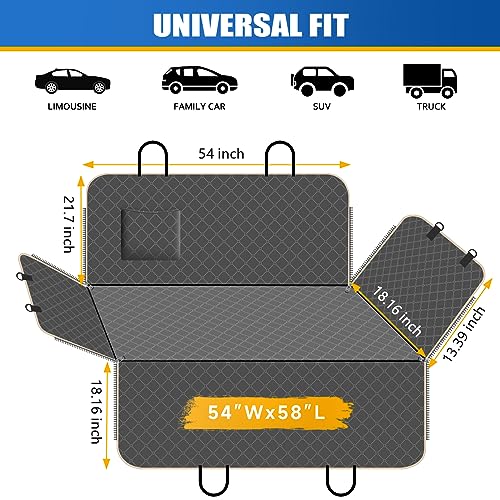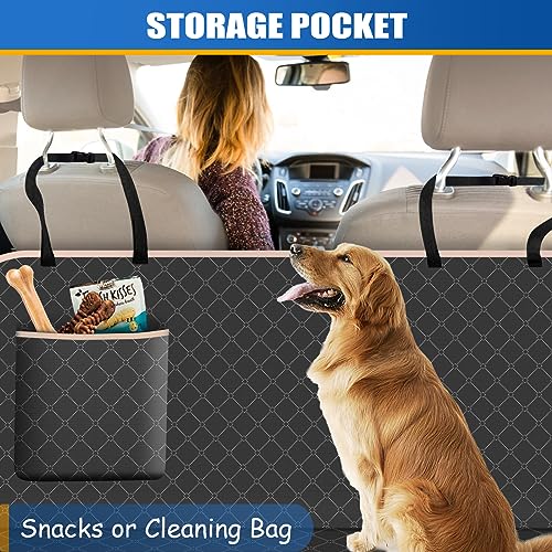 Dog Car Seat Cover for Back Seat Dog Seat Cover with Storage Pocket Dog Hammock Protects Against Dirt Dog Seat Covers for Cars Scratch Prevention Fits for SUVs and Trucks 54″x 58″, Khaki