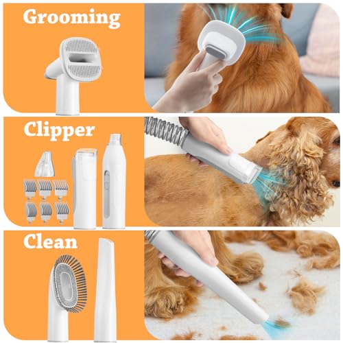 Dog Grooming Vacuum for Shedding & Pet Grooming Vacuum 2.8L Dust Cup Dog Grooming Kit 7 in 1 Pet Grooming Tools Deshedding Vacuum for Dogs with Pet Clipper Nail Grinder